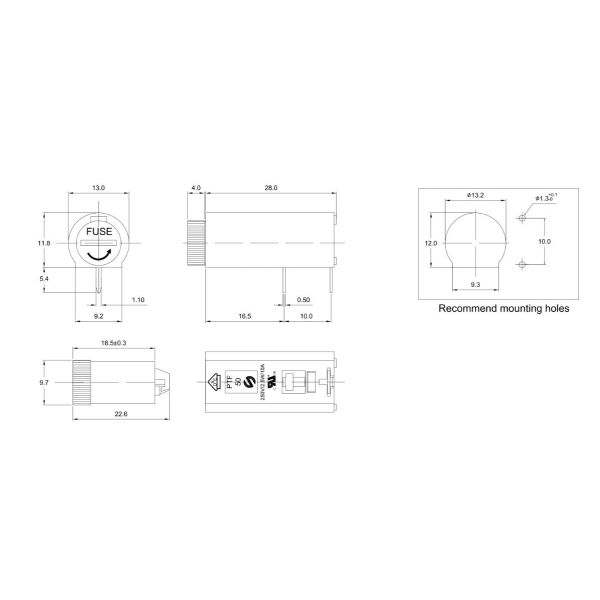 520.PTF50 5.2x20MM Panel Mount Socket Fuse 5x20mm Glass Ceramic Fuse Holder Images |