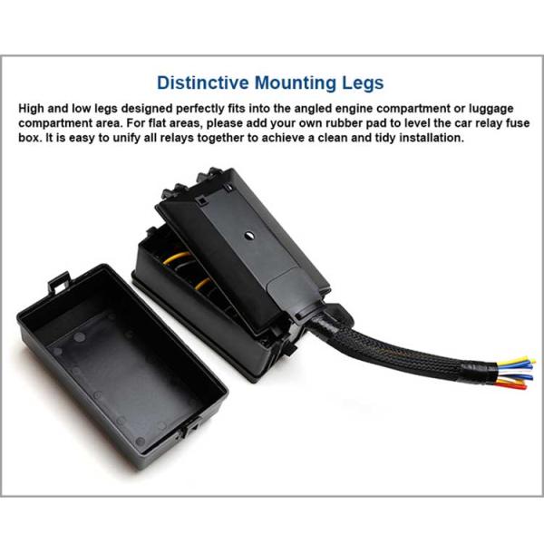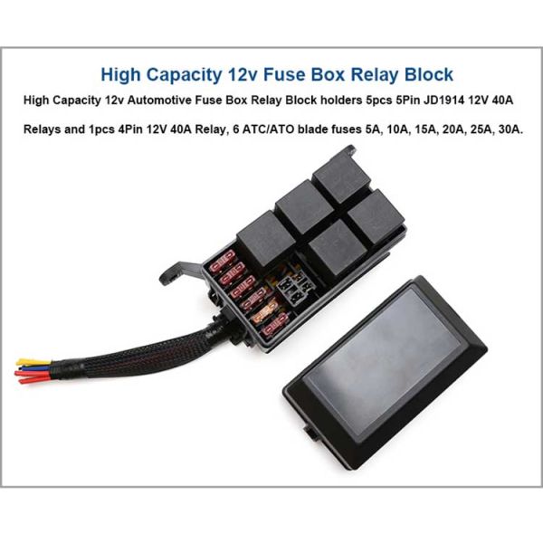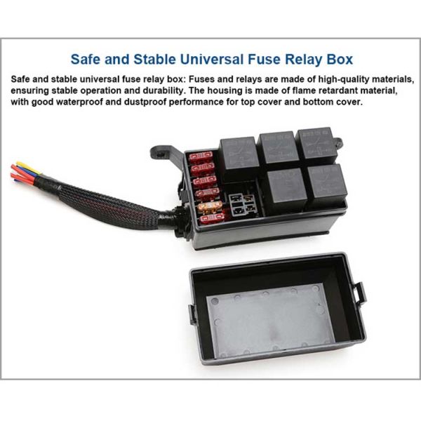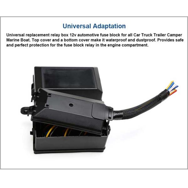 Universal replacement relay box 12v automotive fuse block for all Car Truck Trailer Camper Marine Boat. Top cover and a botom cover make it waterproof and dustproof. Provides safe and perfect protecion for the fuse block relay in the engine compartment.